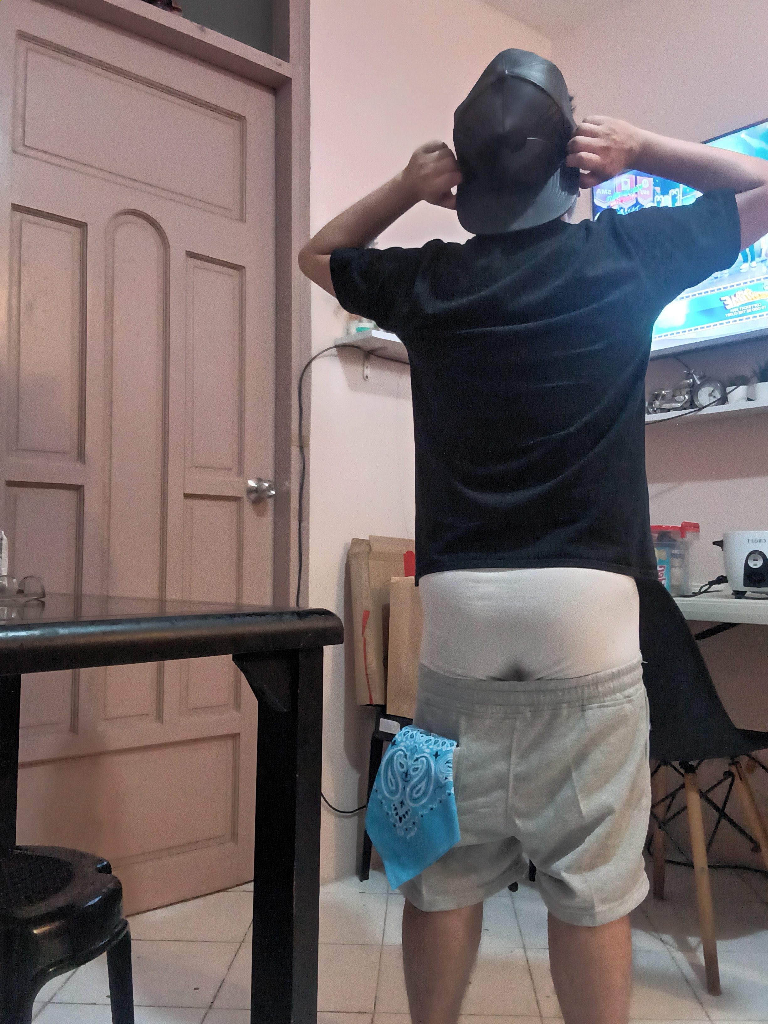Yes, if you have me tied & securely gagged (despite me trying to yell without success) the least you can do is give me some dignity. Allow the boxers to stay over my crack! I don't want to cause a scene & be left to struggle to my own devices.