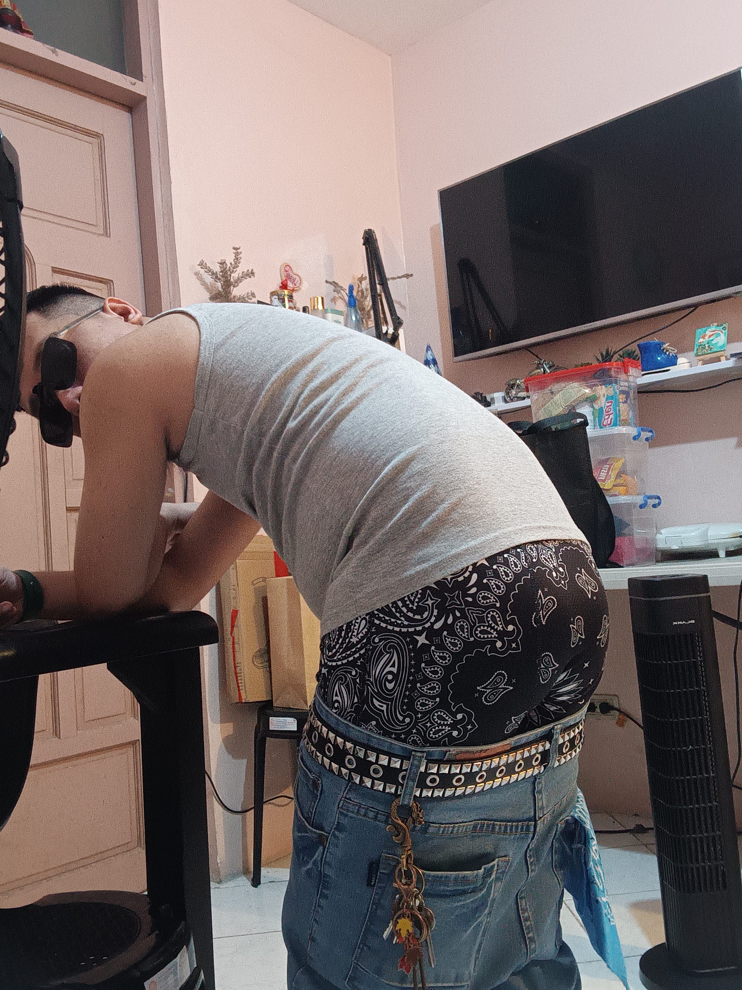 Getting excited at the thought of you hogtying me hehe. You've done a terrific job! My jeans are sliding further down my arse for all to see mmmmm exposing red CKs (turned on like crazy right now ๐คฆโโ๏ธ) b*tch, you better NOT slap my arse whilst subdued! HAHA