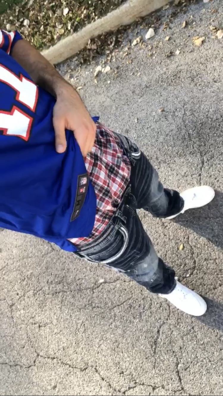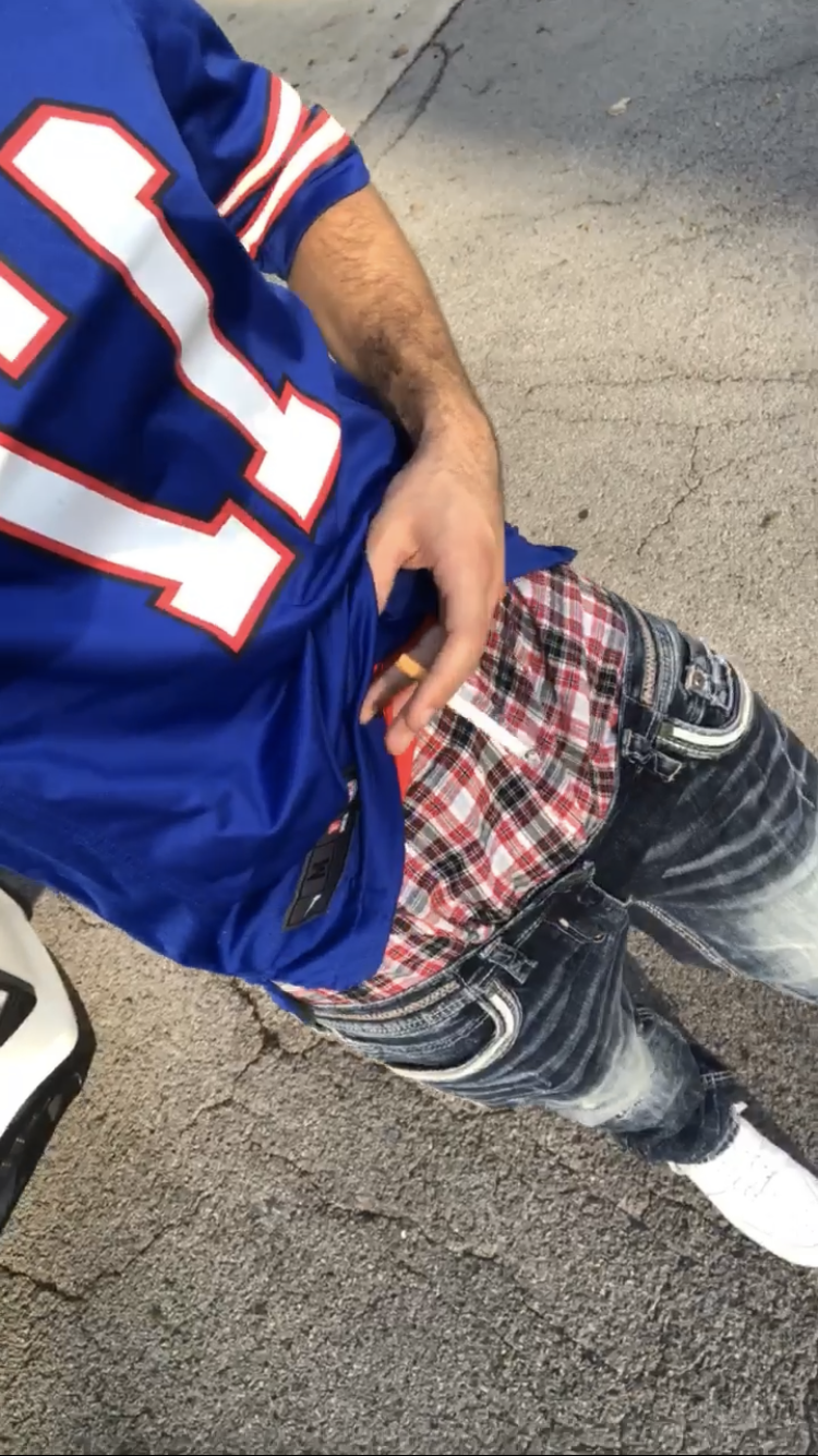some plaid Hanes, Bills jersey, Affliction jeans and forces