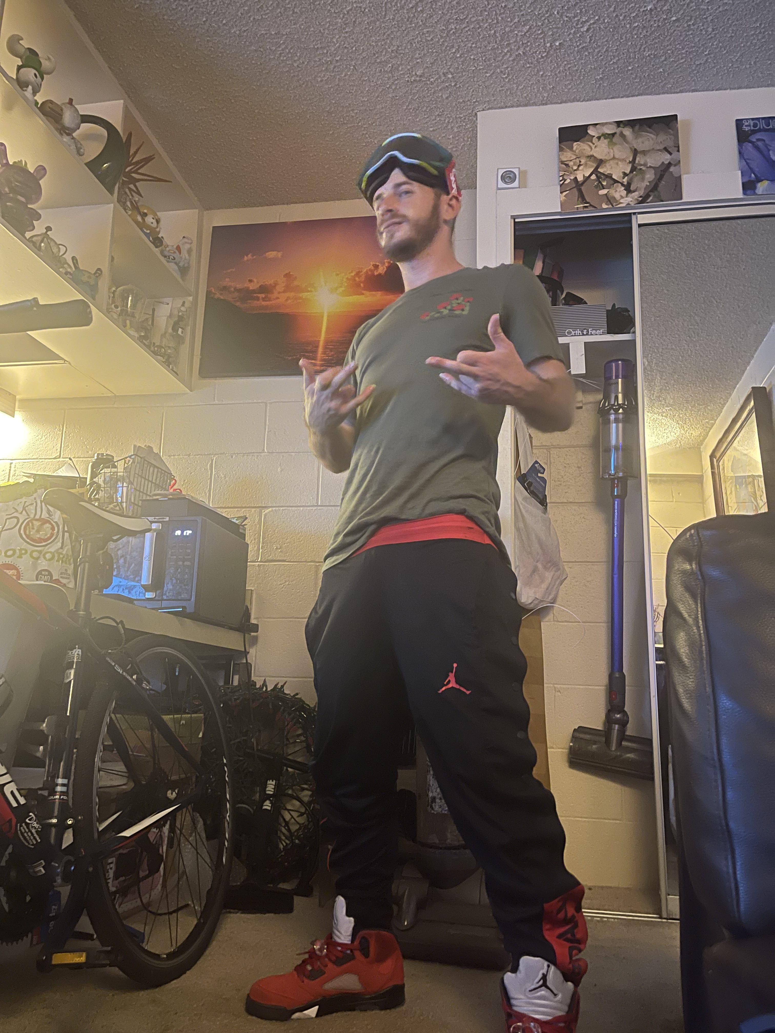 Jordies, Nikes, SnackPants, shiny gear leather gear, motox leather, face covered with swag, chains, gauges, piercings, SILICONE LUBE ADDICTION, addiction to the food for hardcore boys in the sex work and big ****/balls demographic, sunglasses at night, rollerblades, carrying bottles in the public, night walking, being there for a second **** in a dp etc